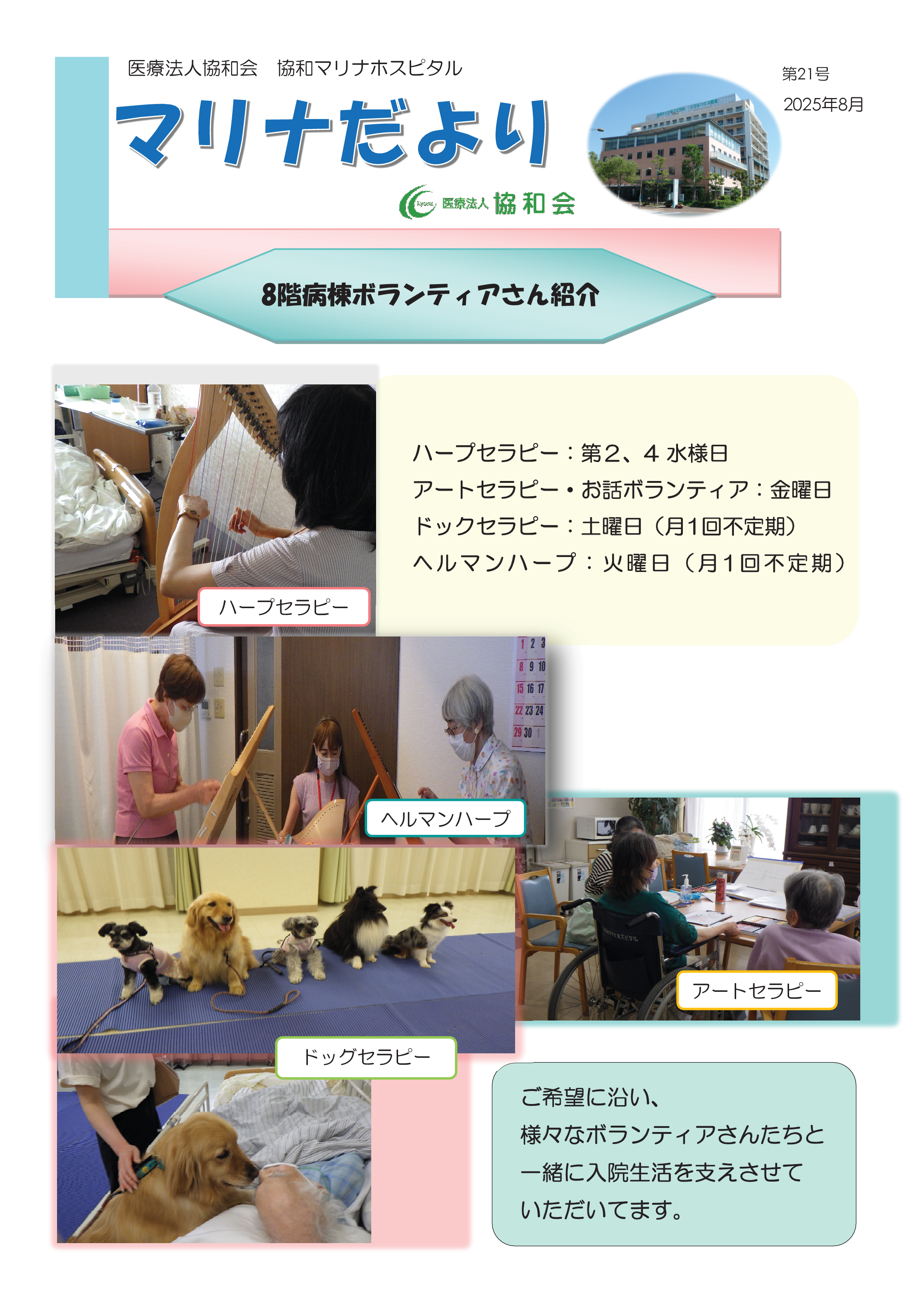 HOME » お知らせ一覧 » お知らせ » マリナだより(病院広報誌)(第21号 2025年8月発行) マリナだより(病院広報誌)(第21号 2025年8月発行) 公開:2025/08/01 マリナだより(バックナンバー一覧)