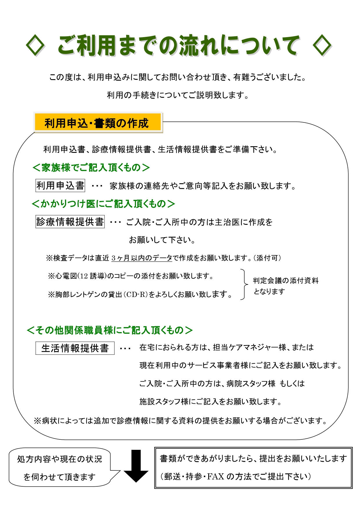 利用申込書、診療情報提供書、生活情報提供書をご準備下さい。
